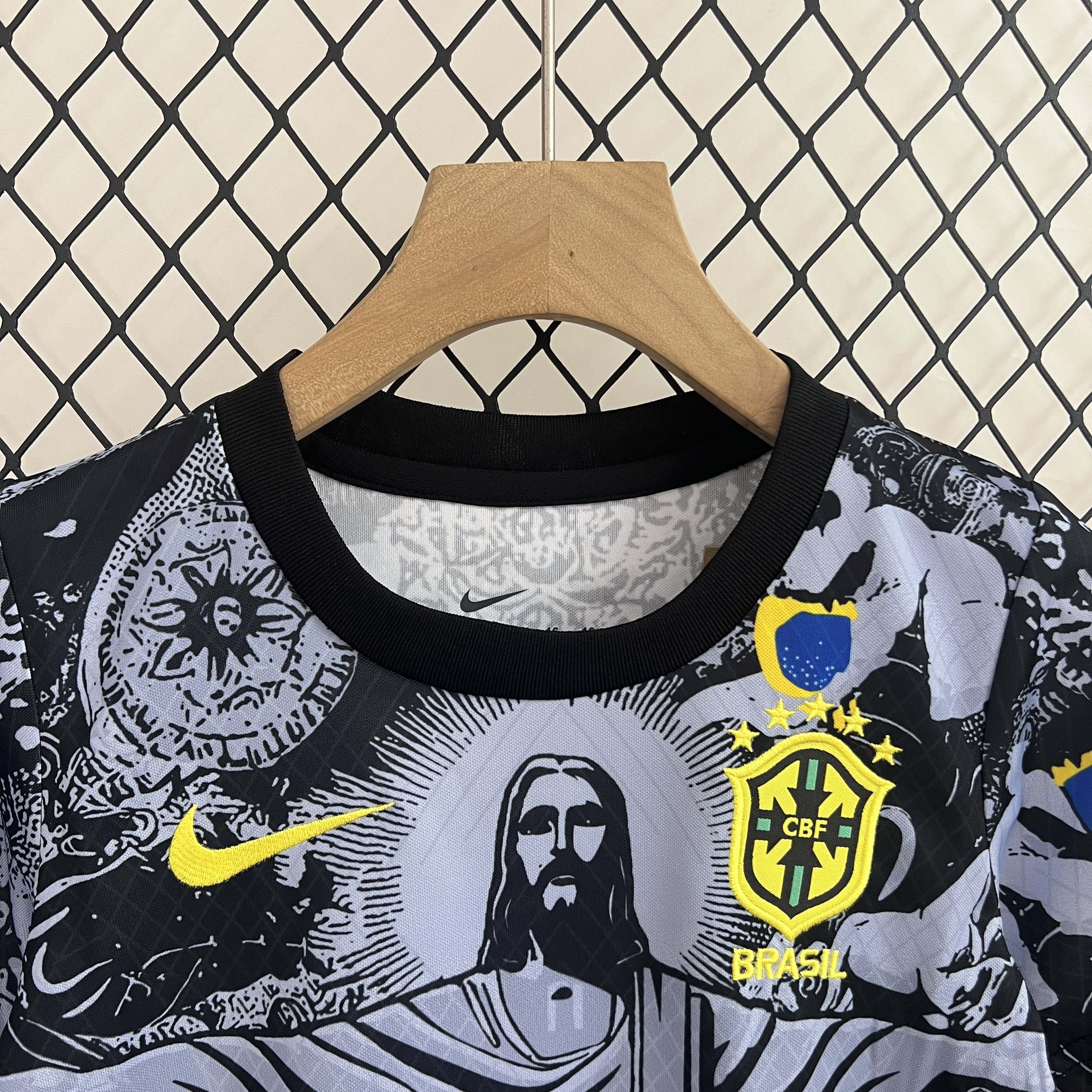 2024 Brazil Special Edition Jesus Black Gray Soccer Jersey Kids Size