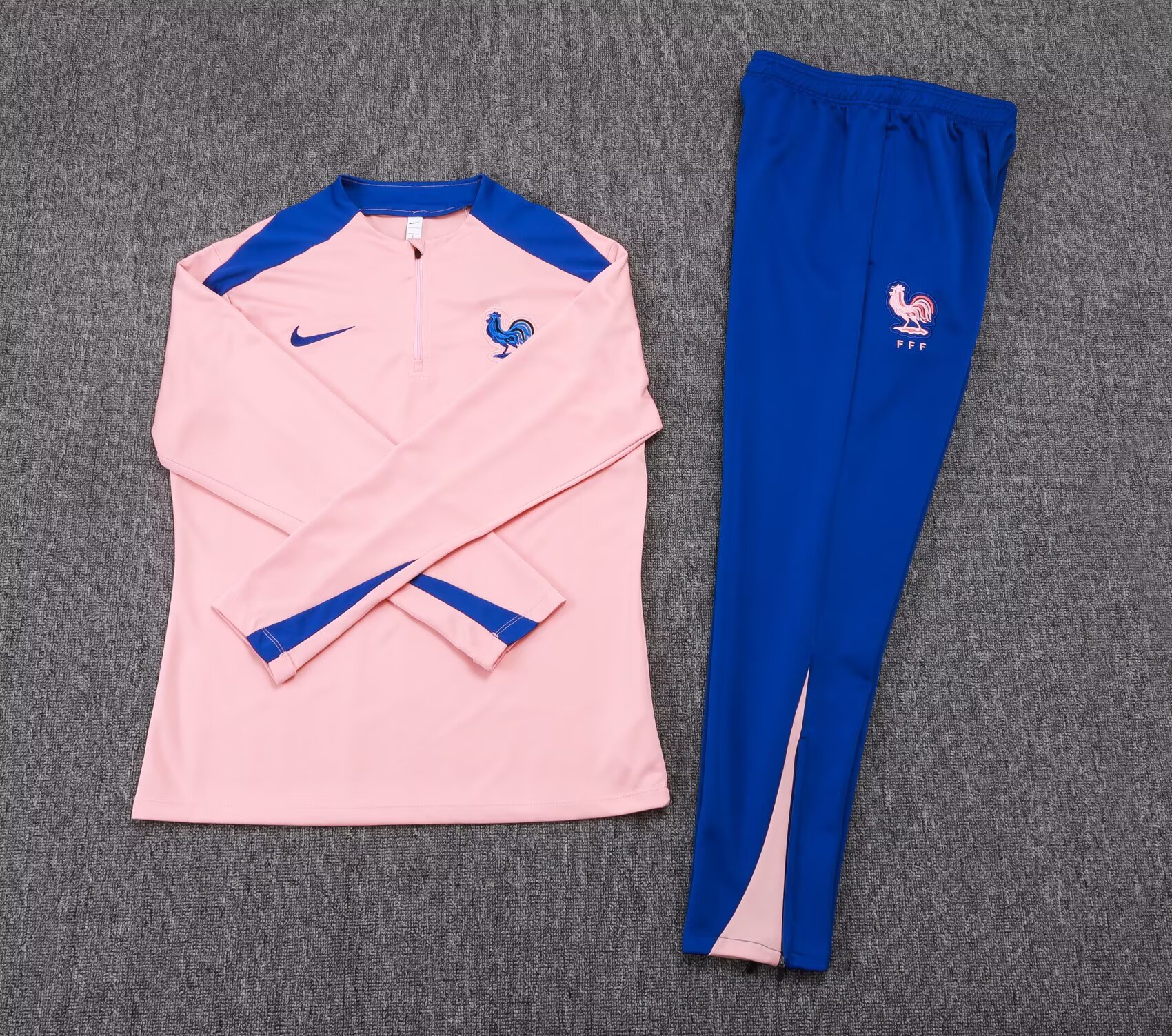 2025 Player Version France Half-Pull Training Suit Pink Football Shirt Set