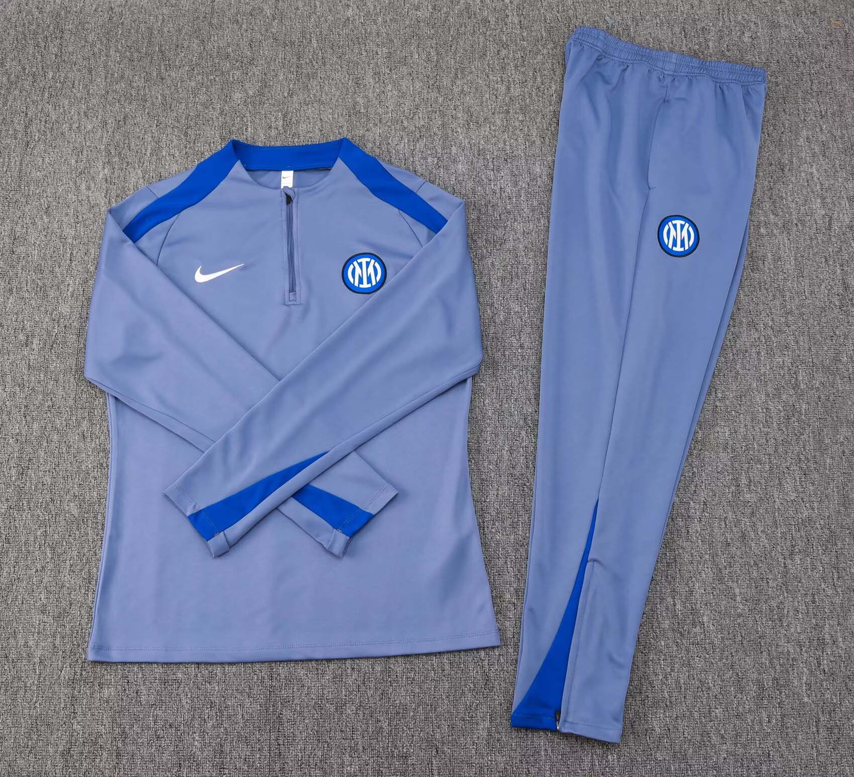 - 2024/2025 Internazionale Milan Half-Pull Training Suit Gray Football Jersey 1:1 Thai Quality Set