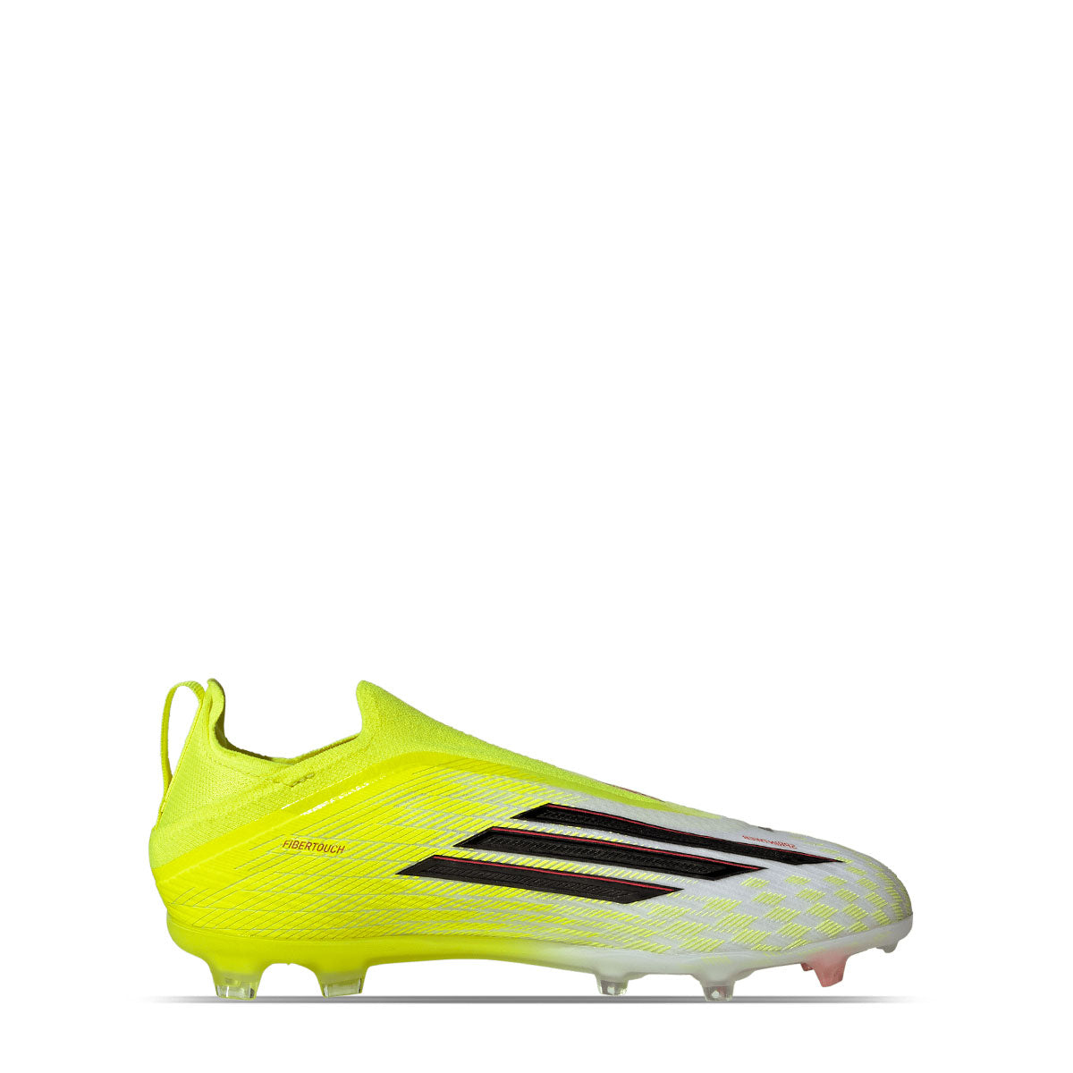 The adidas F50 Elite FG Soccer Cleats are built for young players who value speed and sharp control. Their laceless design makes them easy to put on, allowing kids to stay focused on the game. A Primeknit ankle collar adapts naturally to the foot for a secure feel. The Fibertouch upper delivers lightweight support and cushioning, while Sprintweb technology enhances quick dribbling. Underfoot, the Sprintplate 360 outsole uses a mix of bladed and semi-conical studs to promote agility and acceleration on firm natural grass. This design helps young athletes play confidently throughout every match, from start to the final whistle.