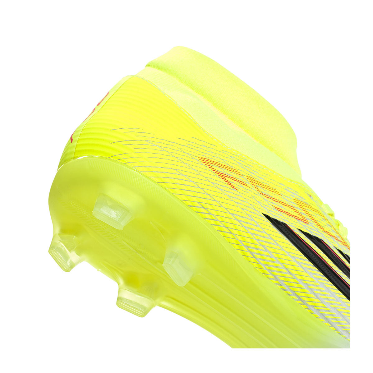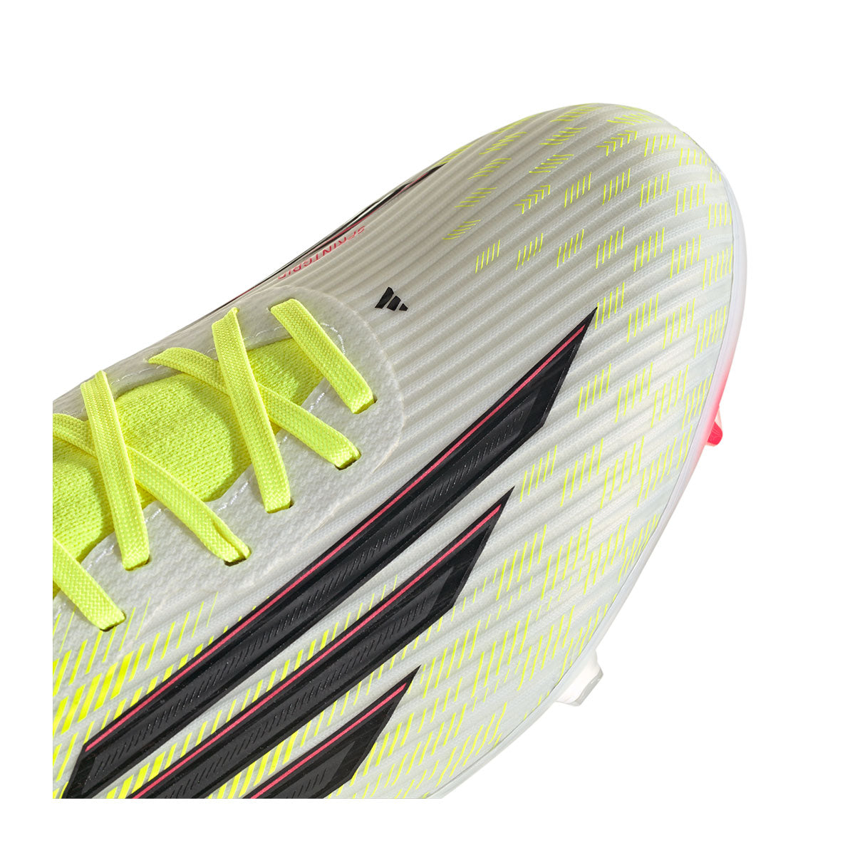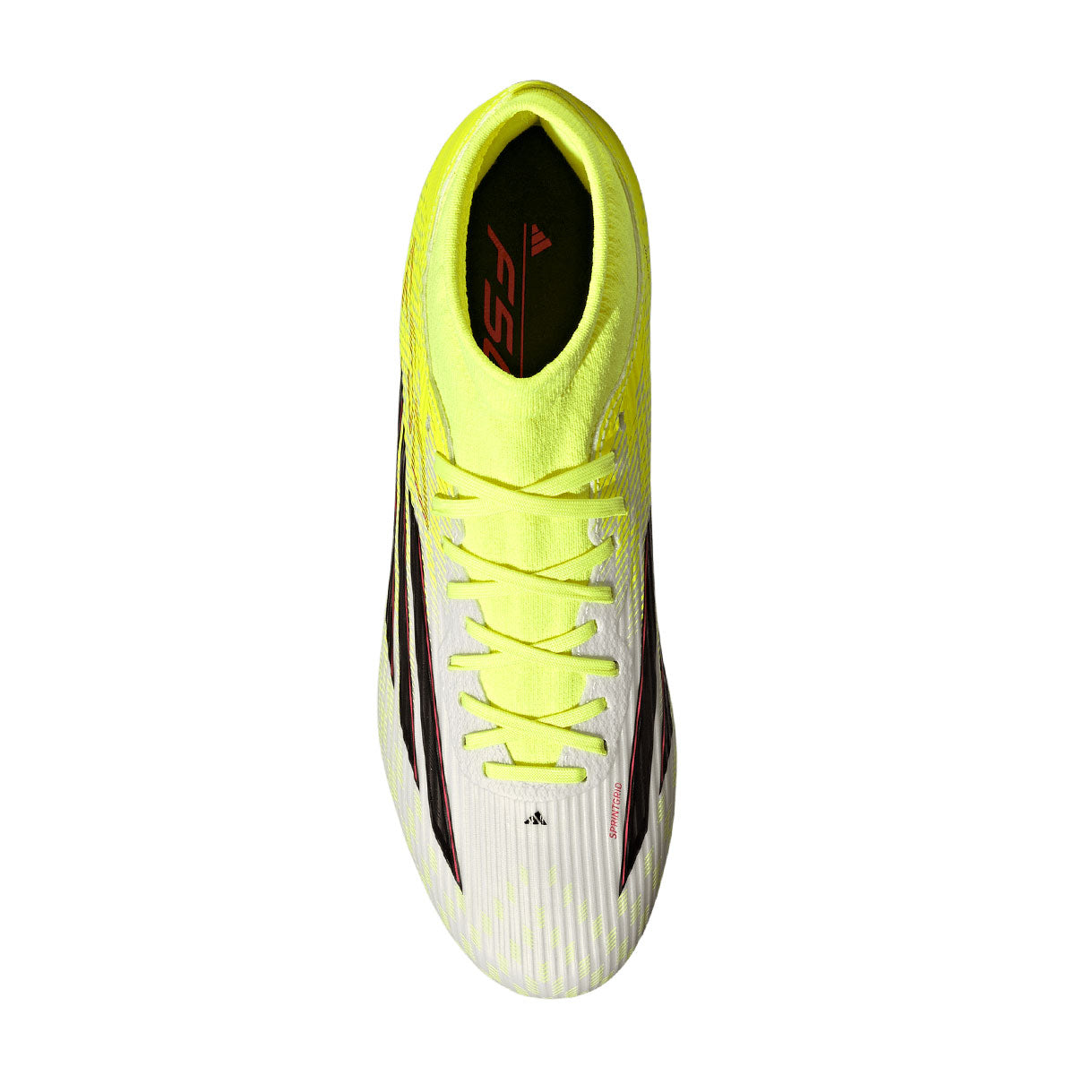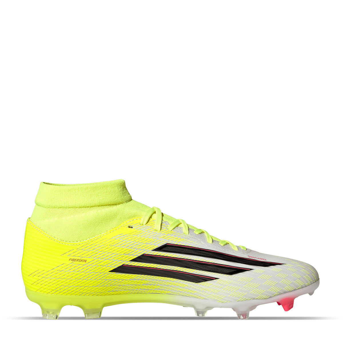 The adidas F50 League FG/MG Soccer Cleats are engineered for explosive speed and a featherlight feel. Built for players who thrive on agility and control, they blend advanced technology with a sleek, standout design. The Fiberskin upper features textured raised lines that enhance ball touch and grip at high pace. Inspired by elite models, a Sprintgrid overlay adds a modern finish. Underfoot, the Sprintplate 360 outsole uses bladed and semi-conical studs for multidirectional traction, while the extended knit collar delivers a secure, comfortable fit.