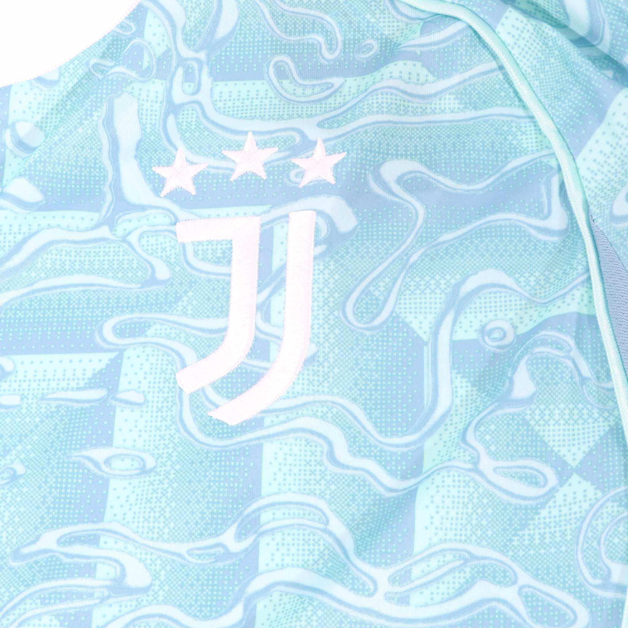 The Bianconeri hit the road in the Juventus 2025/26 Away Jersey. Charcoal heather fabric mixes with subtle pink pinstripes��a nod to Turin��s architecture and Juve��s 1897 roots. AEROREADY tech keeps sweat at bay, and ribbed sleeve cuffs offer a stay-put fit. An embroidered club badge sits over the heart, while a ��Fino Alla Fine�� inscription on the inner collar declares loyalty until the end.