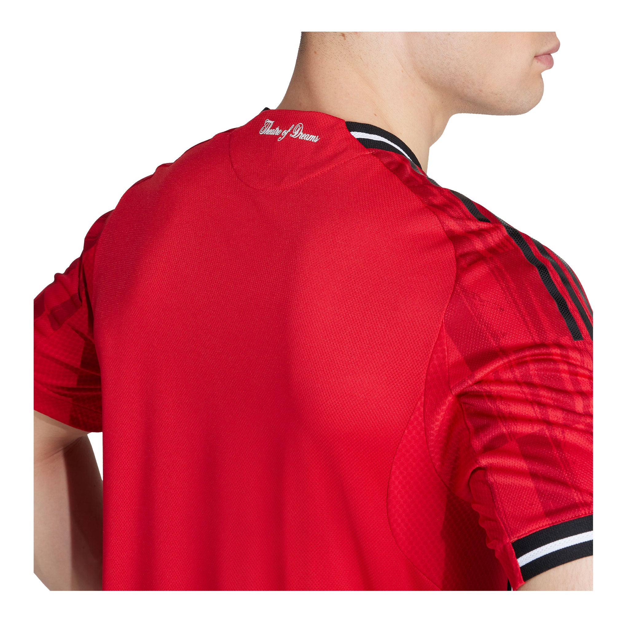 Built for the pitch, the authentic Man United 25/26 Home Jersey pairs HEAT.RDY fabric with ergonomic side panels for total freedom of movement. A heat-bonded crest keeps weight down, and a slightly raised Lancashire Rose graphic �� visible only up close �� adds subtle swagger. Designed for ruthless performance inside the Theatre of Dreams.
