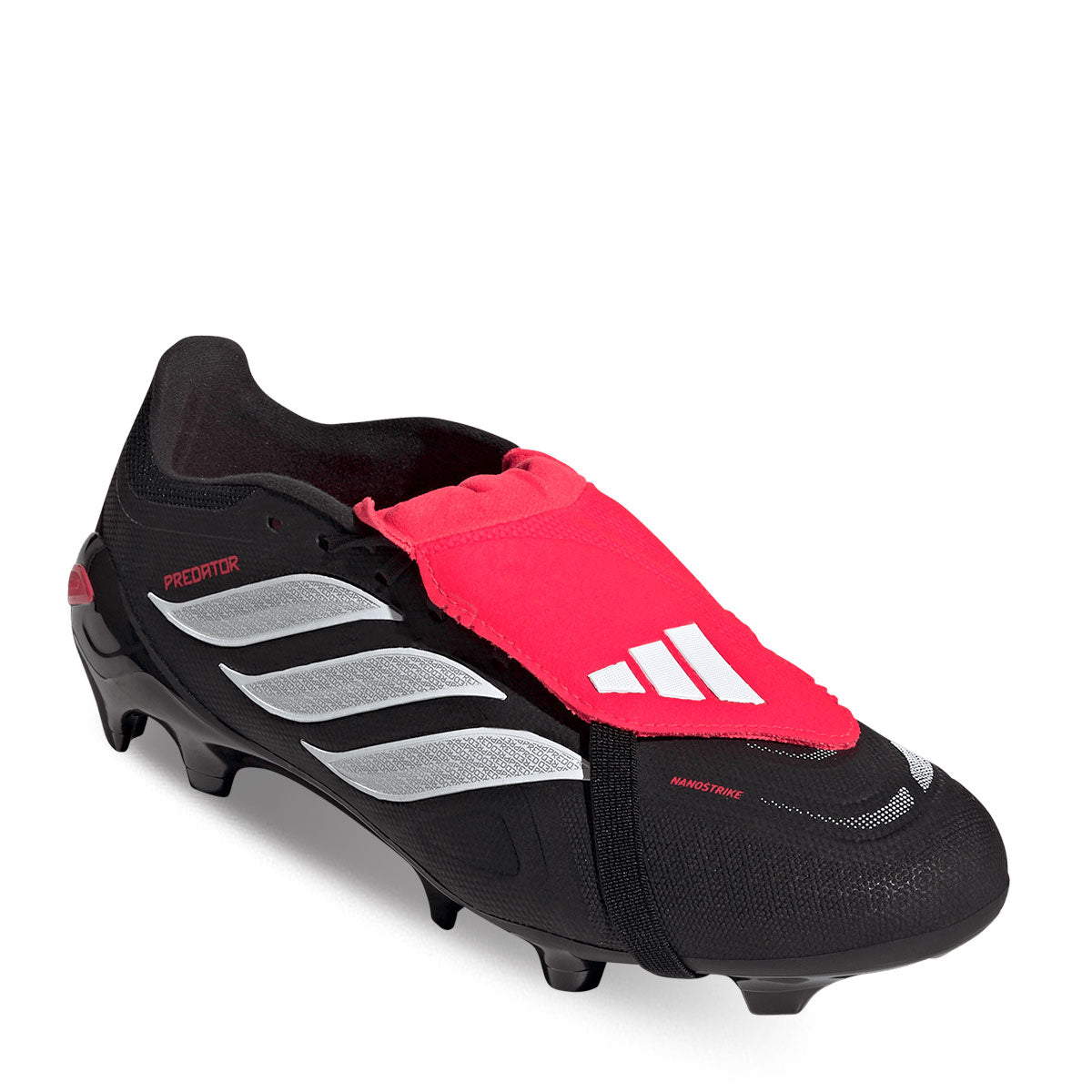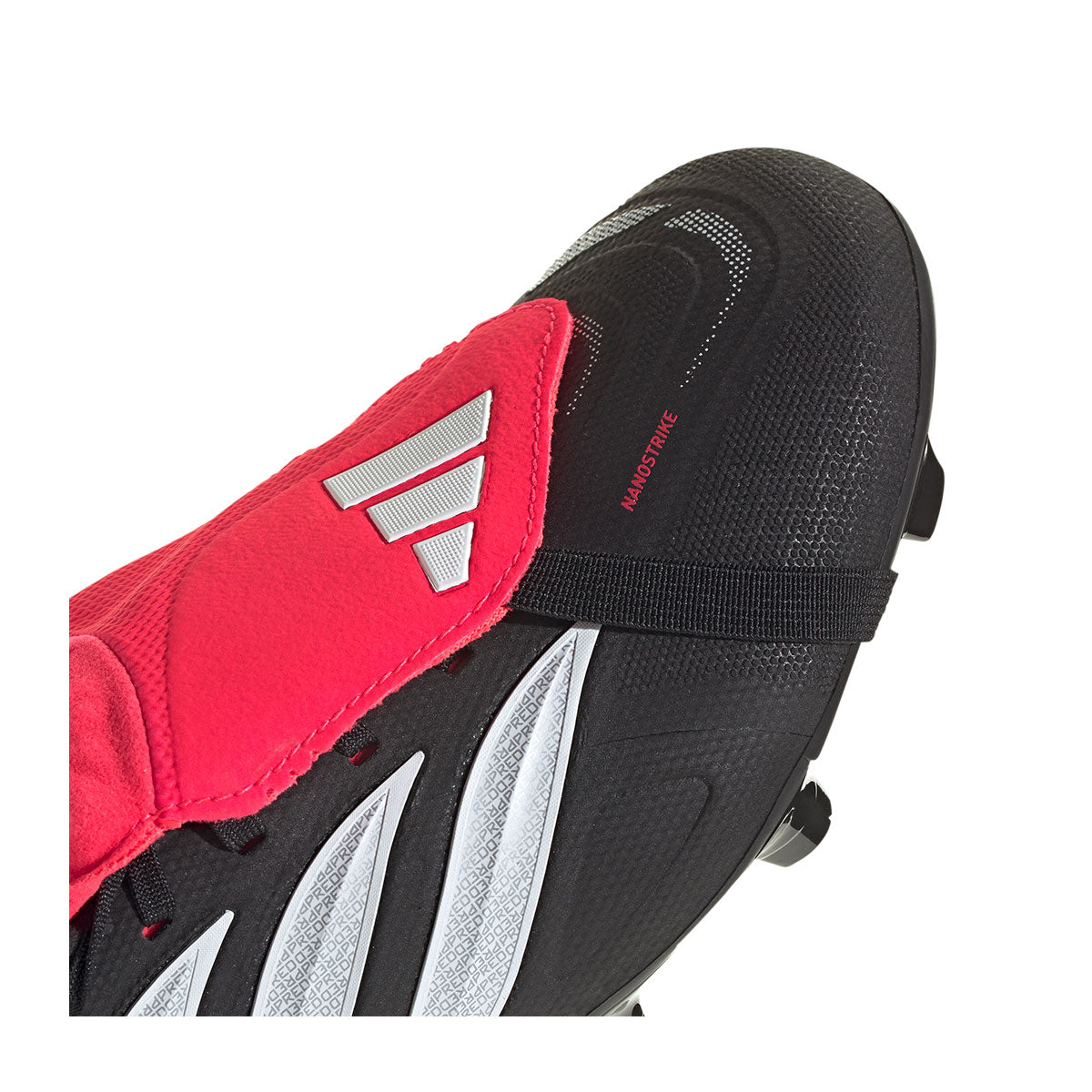 The adidas Predator League FG Soccer Cleats are crafted to elevate your performance. Their Nanostrike mesh upper provides added lightness and softness, featuring an integrated haptic element that enhances striking accuracy. Powerspine technology stabilizes the midfoot, allowing for more powerful shots. The classic fold-over tongue creates a clean striking surface, while the full-length, lightweight Strikeframe plate delivers dependable traction for confident finishes. Designed with a traditional cut and secure lacing system, these boots offer comfort and stability on firm natural grass, helping you stay focused as you drive your game forward and make every touch count.