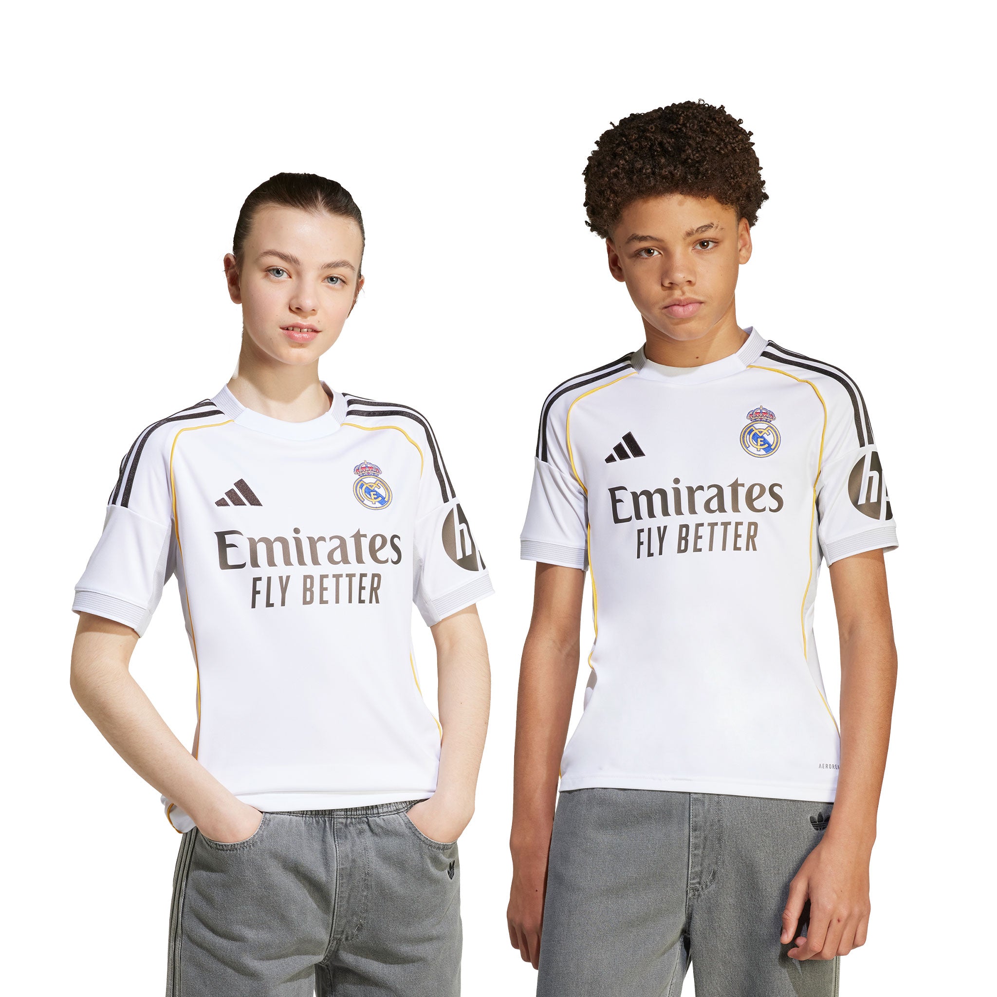 The adidas Real Madrid 25/26 Home Jersey takes inspiration from the renovated Bernab茅u, perfect for showing your support for Los Blancos. Featuring a white design with modern yellow accents, black adidas branding, and the original crest, it��s equipped with AEROREADY technology to wick away moisture and keep you dry and comfortable.