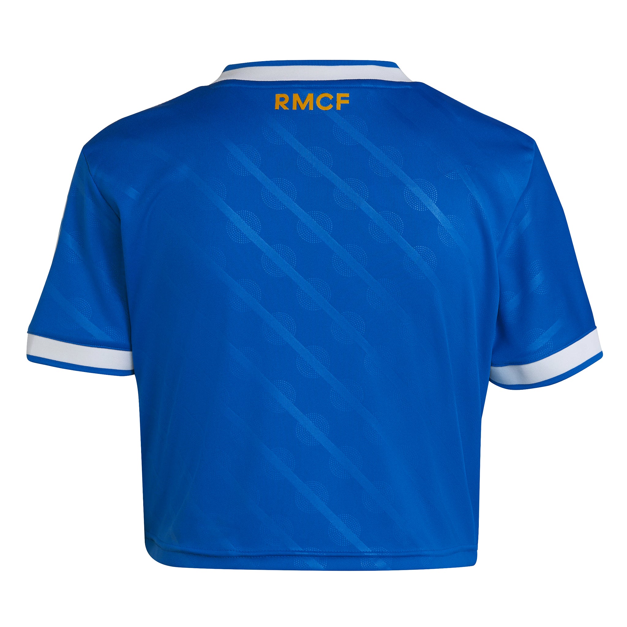 At home in blue. This cropped third jersey comes in a hue that's close to the hearts of Madridistas and 3-Stripes fans. A classic adidas Originals colourway and a subtle nod to the Bernab茅u's identity, it's the perfect shade to celebrate the ultimate football partnership. Serrated 3-Stripes and a Trefoil add extra adidas heritage. Moisture-managing AEROREADY keeps fans focused.