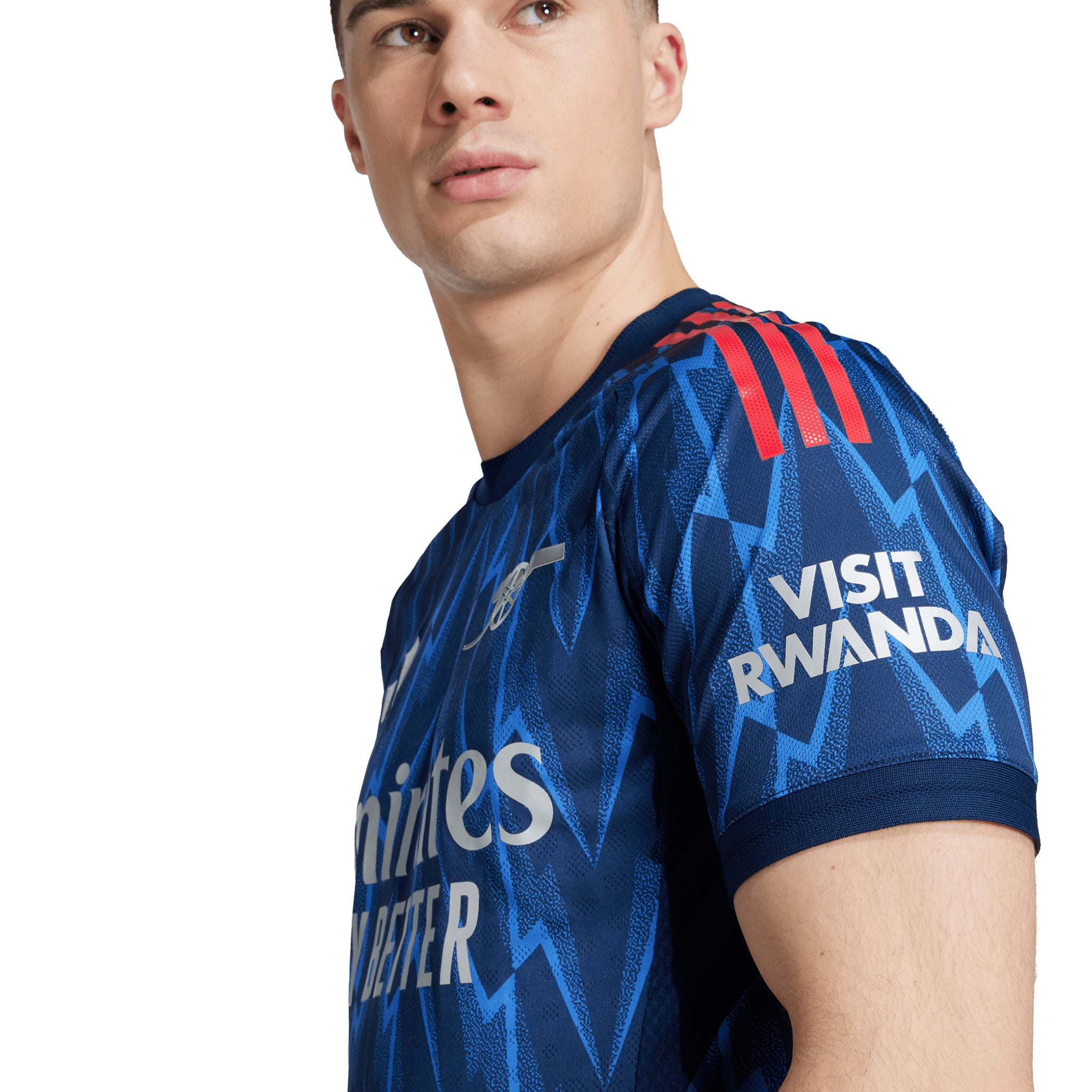 Flashback through Arsenal's history and you'll see the lightning bolt has been a fixture. This adidas authentic football jersey brings the iconic motif back with a bang thanks to a thoroughly modern light-blue-and-navy all-over print. Its performance-focused construction ensures players stay fully charged on the field.