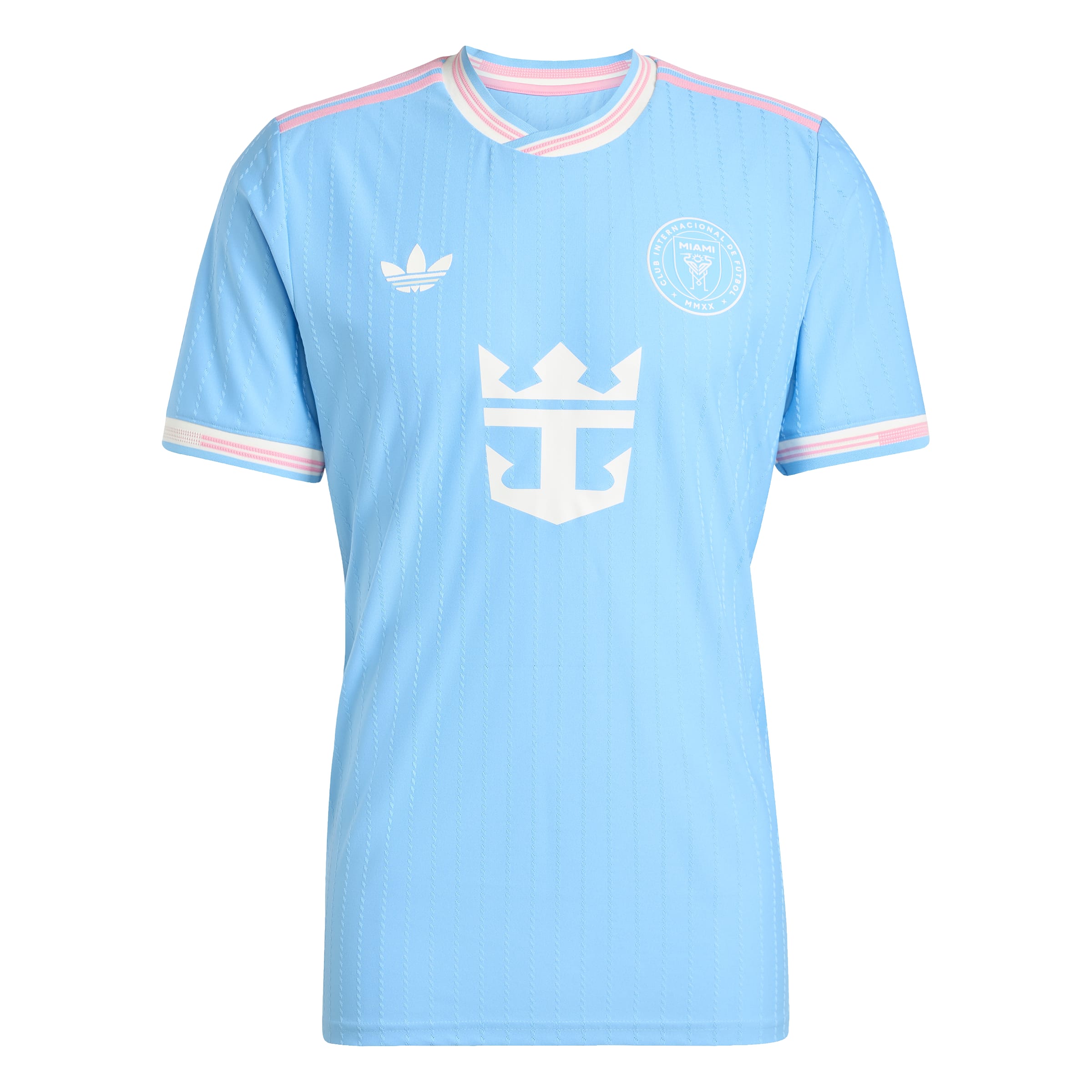 Embrace Miami��s vibrant spirit in this Inter Miami CF third jersey. Ocean-blue hues with pink accents reflect the coastline, while subtle pinstripes add elegance. Lightweight fabric with AEROREADY ensures comfort and performance, and a club badge with Trefoil completes the look. Perfect for fans who want style, pride, and smooth play on the pitch.