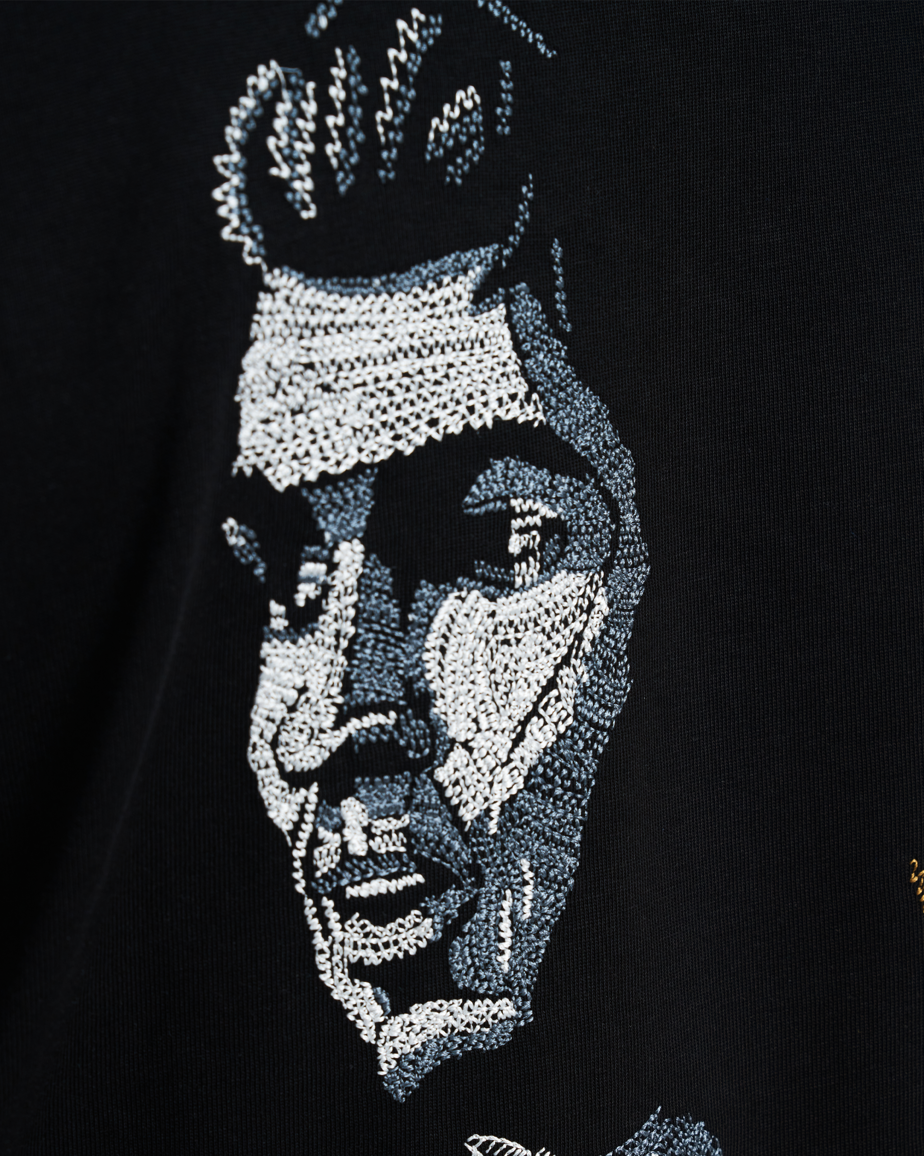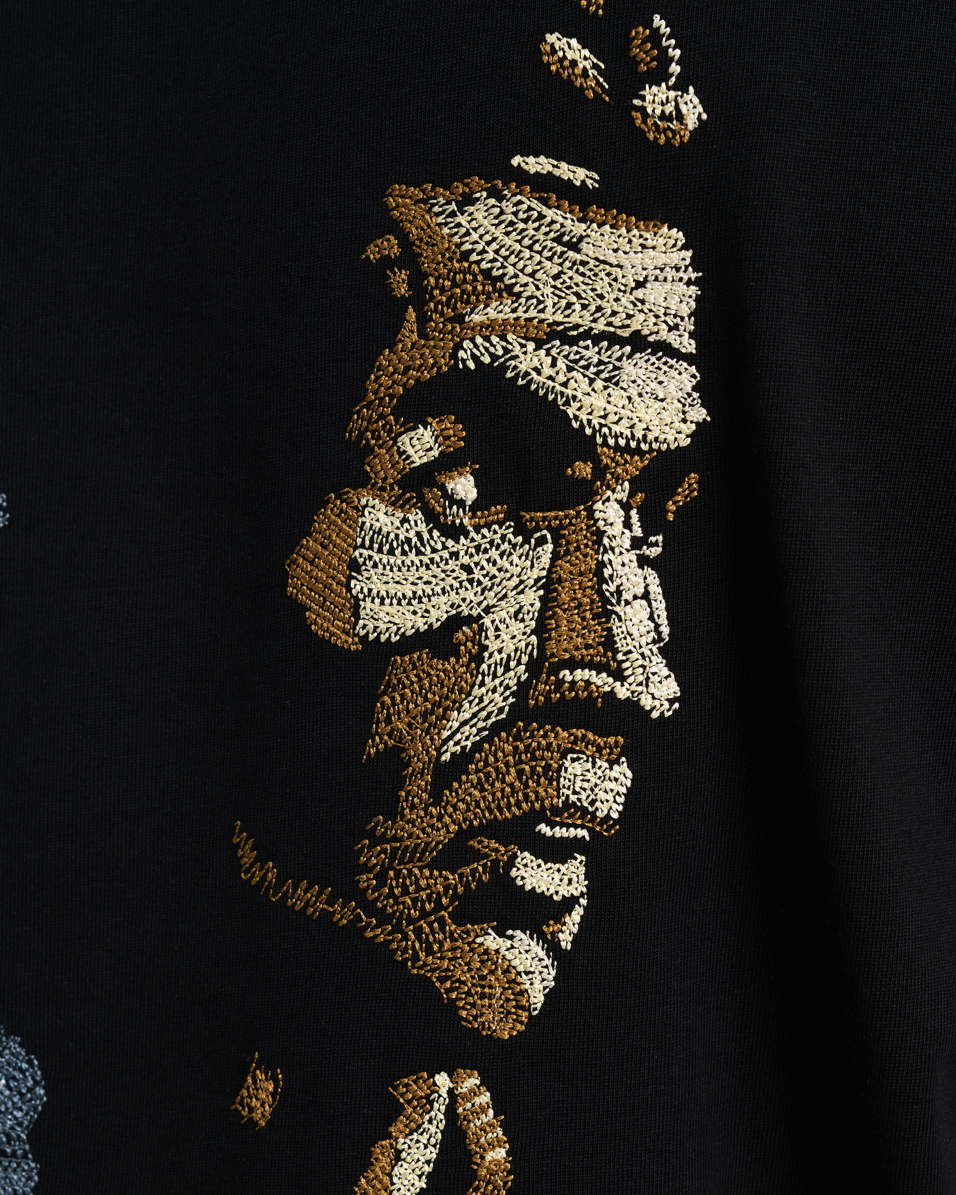 - 200,000+ metallic silver and gold stitches.